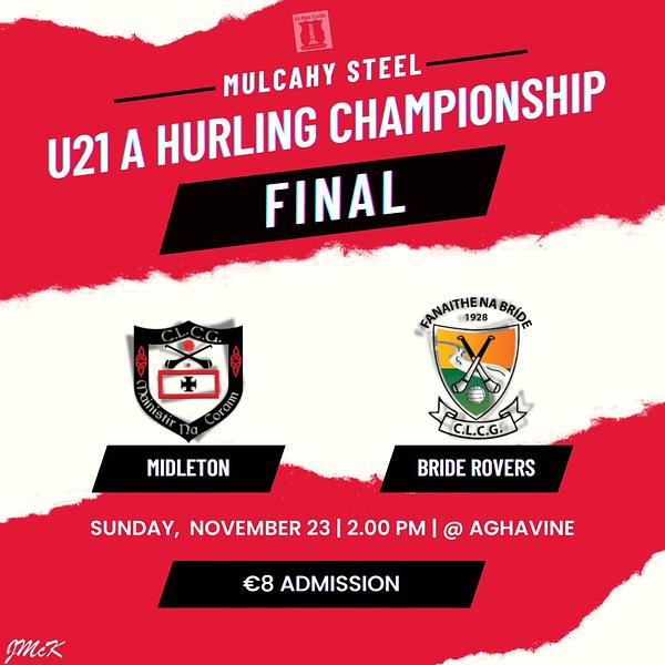 The Mulcahy Steel U21 A Hurling Championship final takes place today (Sunday 23rd Nov)