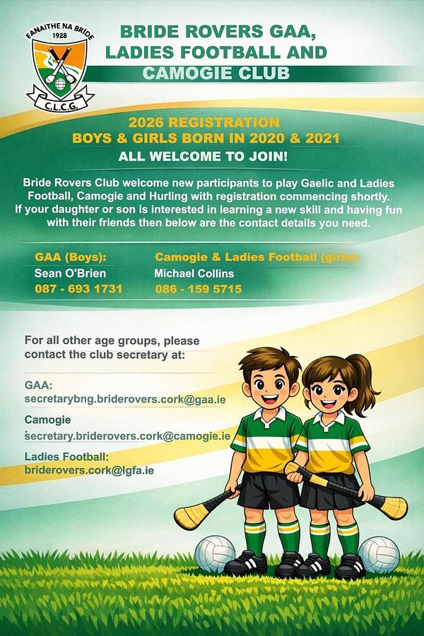 For parents of girls in the U6/U5 age group, please contact Michael Collins on 086 1595715, while parents of U6/U5 boys should contact Seán O'Brien on 087 6931731