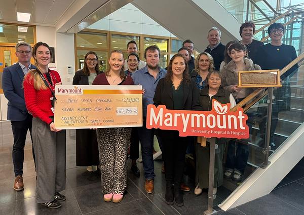 Today, the organising committee of the Conna Valentines Dance and Raffle had the pleasure of presenting Marymount Hospice with a cheque for €57,000. This represented the poceeds of their recent event, and was raised in honour of their dear friend Catherine Spillane.