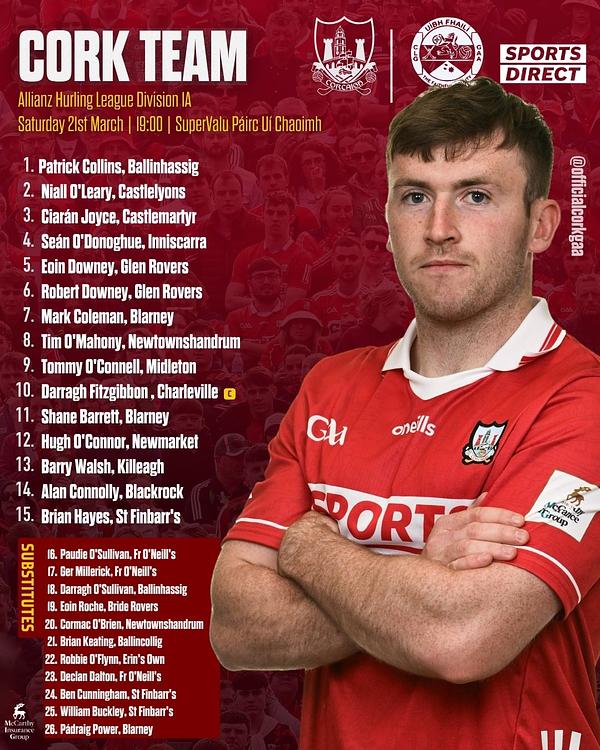 https://gaacork.ie/2026/03/20/cork-senior-hurling-team-to-play-offaly-has-been-announced/